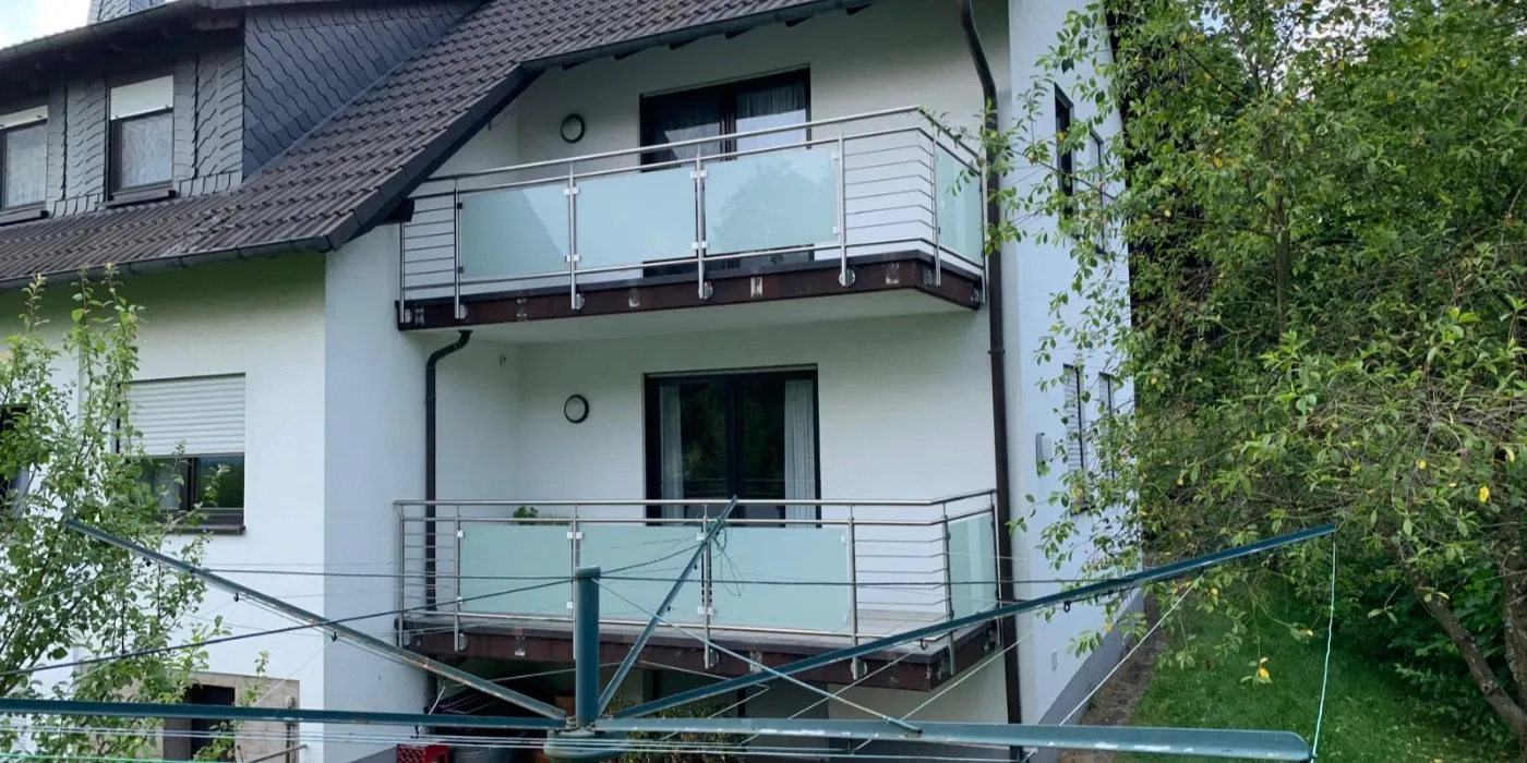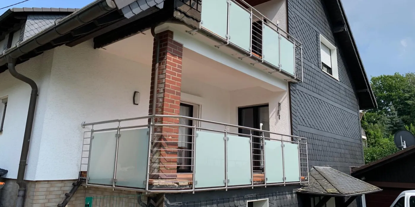 Im Jahr 2024 durfte die Gebrüder Zwinge Metallbau GmbH ein anspruchsvolles Projekt für einen privaten Kunden realisieren. Ziel war es, die alten Balkongeländer eines älteren Hauses durch moderne und hochwertige Edelstahl-Geländer mit Milchglasfüllung zu ersetzen. Das Projekt kombinierte zeitgemäßes Design mit präziser Handwerkskunst und meisterte die besonderen Herausforderungen des bestehenden Gebäudes.